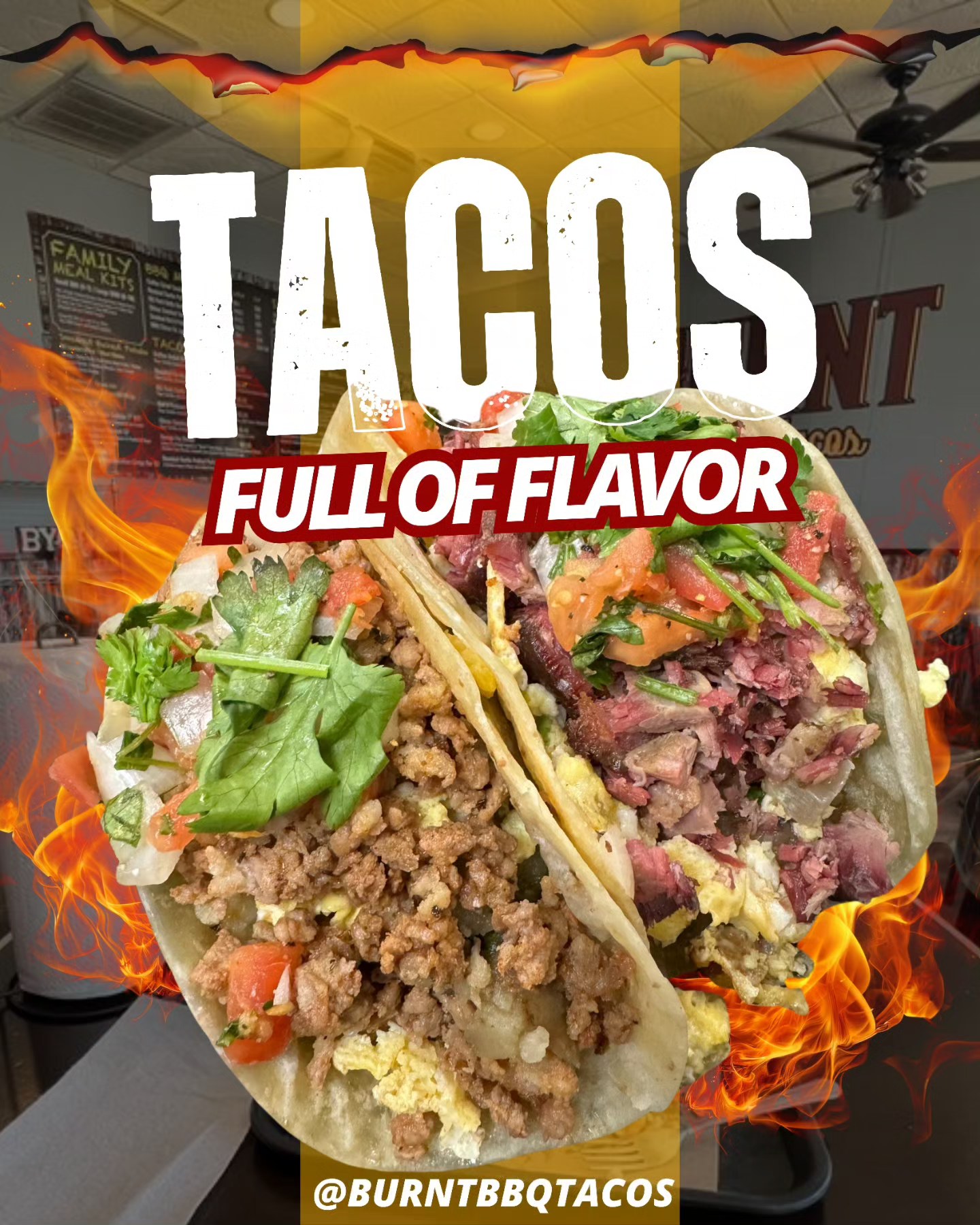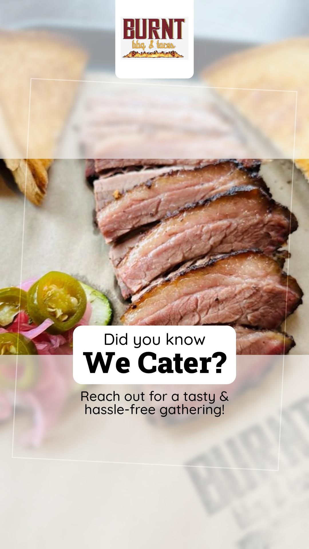 At Burnt BBQ & Tacos Catering, our menu is a love letter to Texas traditions with a fusion twist. Fire up your event with these crowd-pleasers: