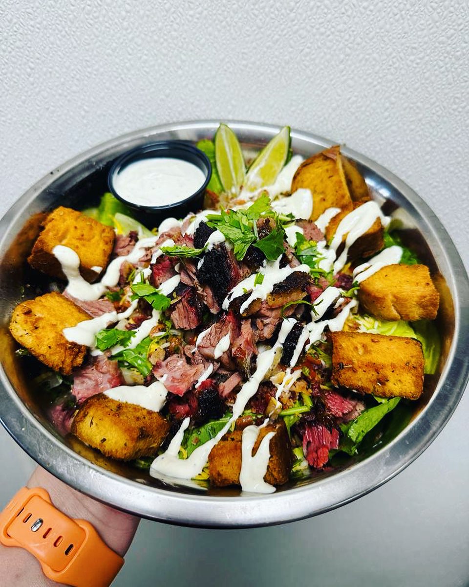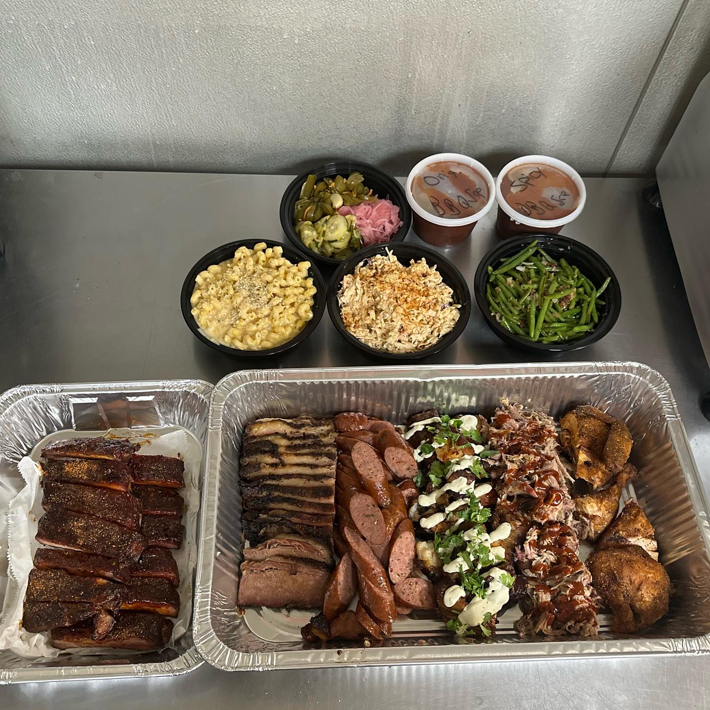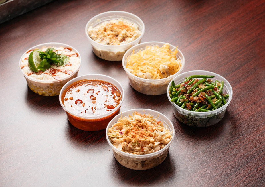 - Sides: Creamy coleslaw, baked beans with brisket bits, cornbread muffins, elote (street corn), and fresh salads.